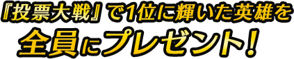ファイアーエムブレムヒーローズに登場したキャラクターの中から、1日1回、好きなキャラクターを選んで投票をすることができます。投票の結果、上位8位にランクインしたキャラクターは、ゲーム内で2月下旬に開催される「投票大戦」に出場します。「投票大戦」で1位に輝いたキャラクターは3月中に全てのお客様にプレゼントします。